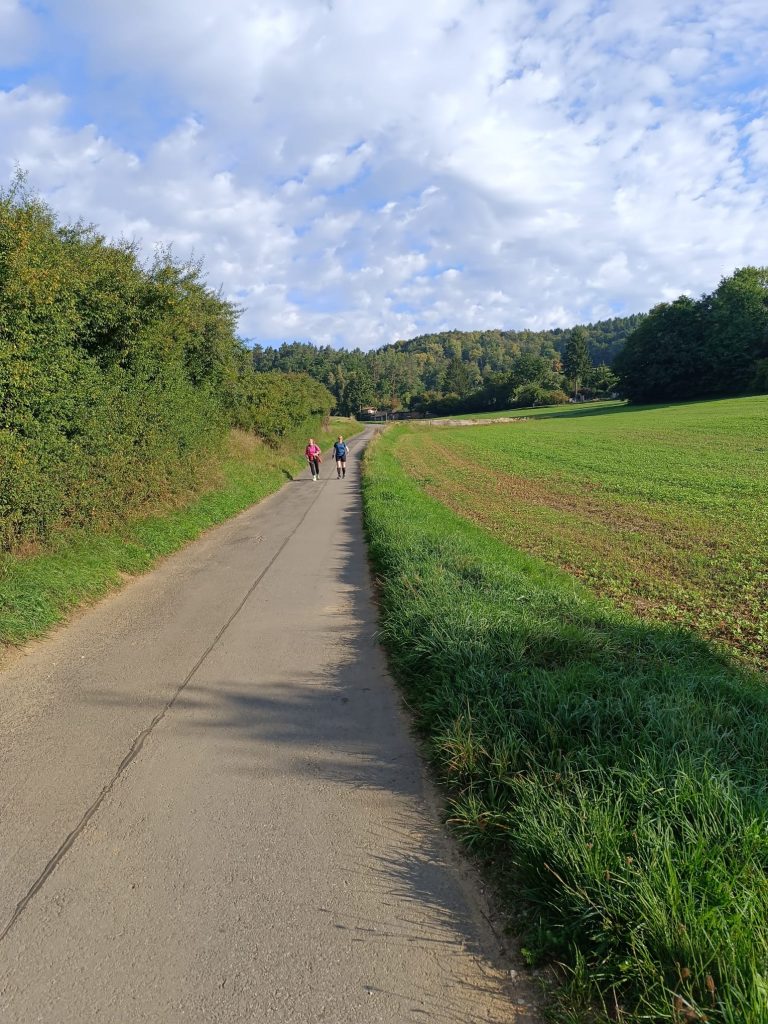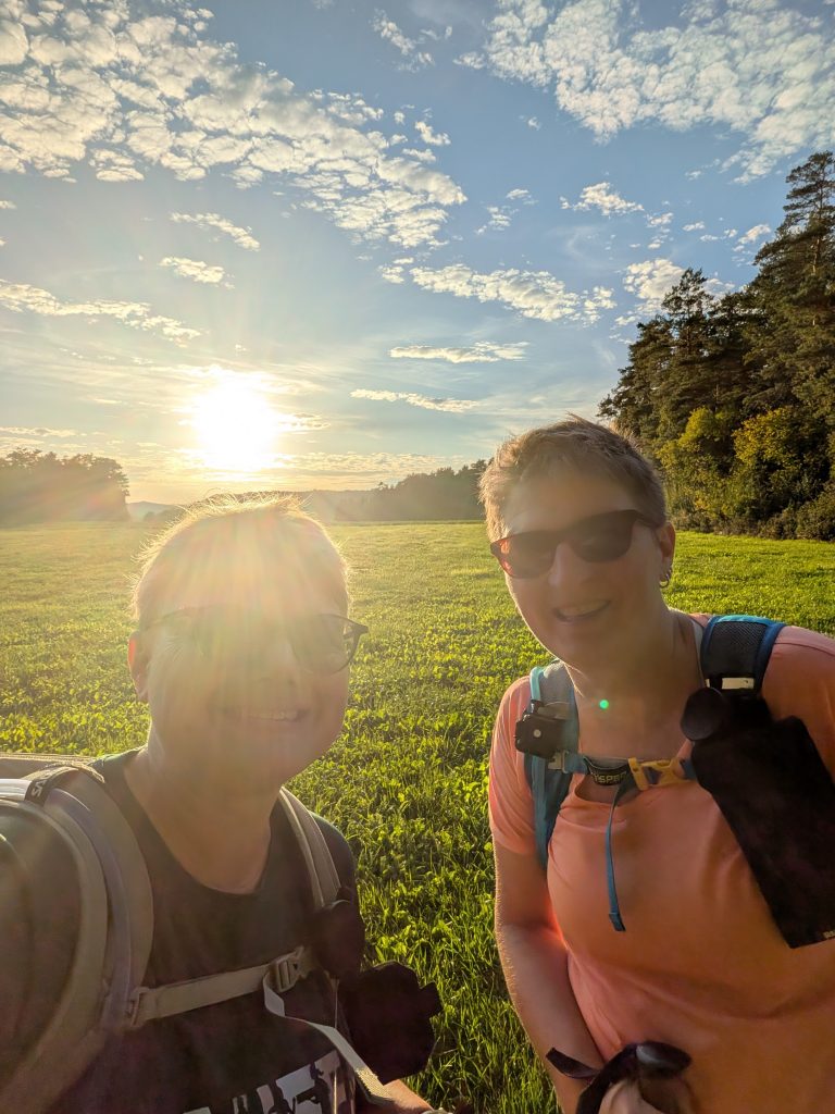 Die Hitze hatte Doris so sehr zugesetzt, dass klar war: Weitergehen wäre gefährlich. Also rief ich Volker an, der (mit dem Auto) in wenigen Minuten zur Stelle war und sie und auch ihren Mann abholte. Vorher klärten wir nochmal, dass ich ohne sie weitergehen würde. Doris wünschte mir viel Erfolg und „du schaffst das heute“.