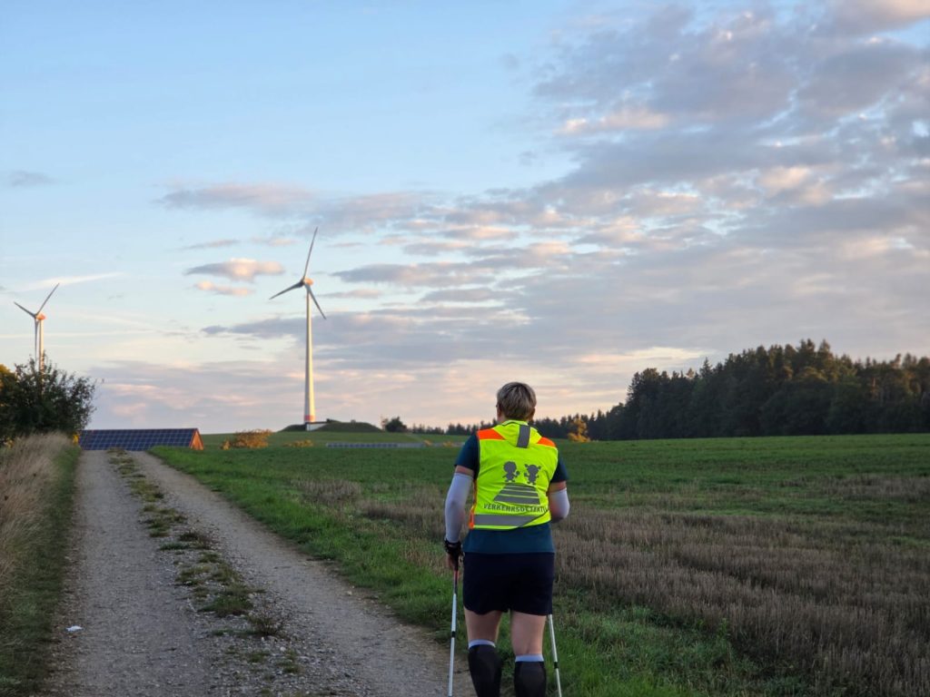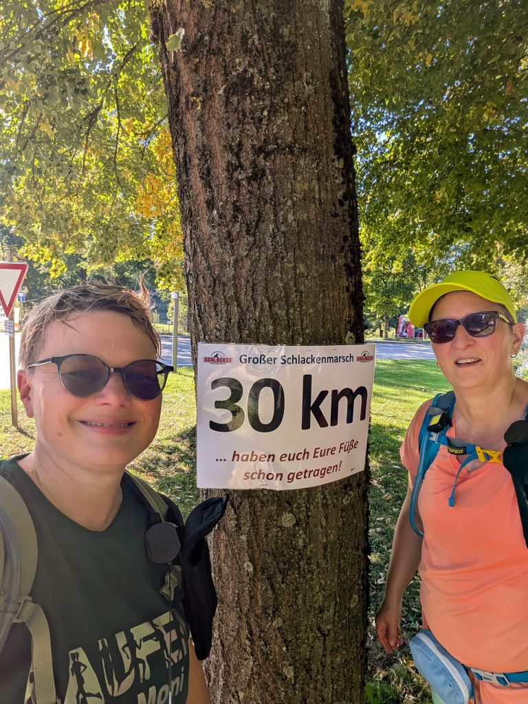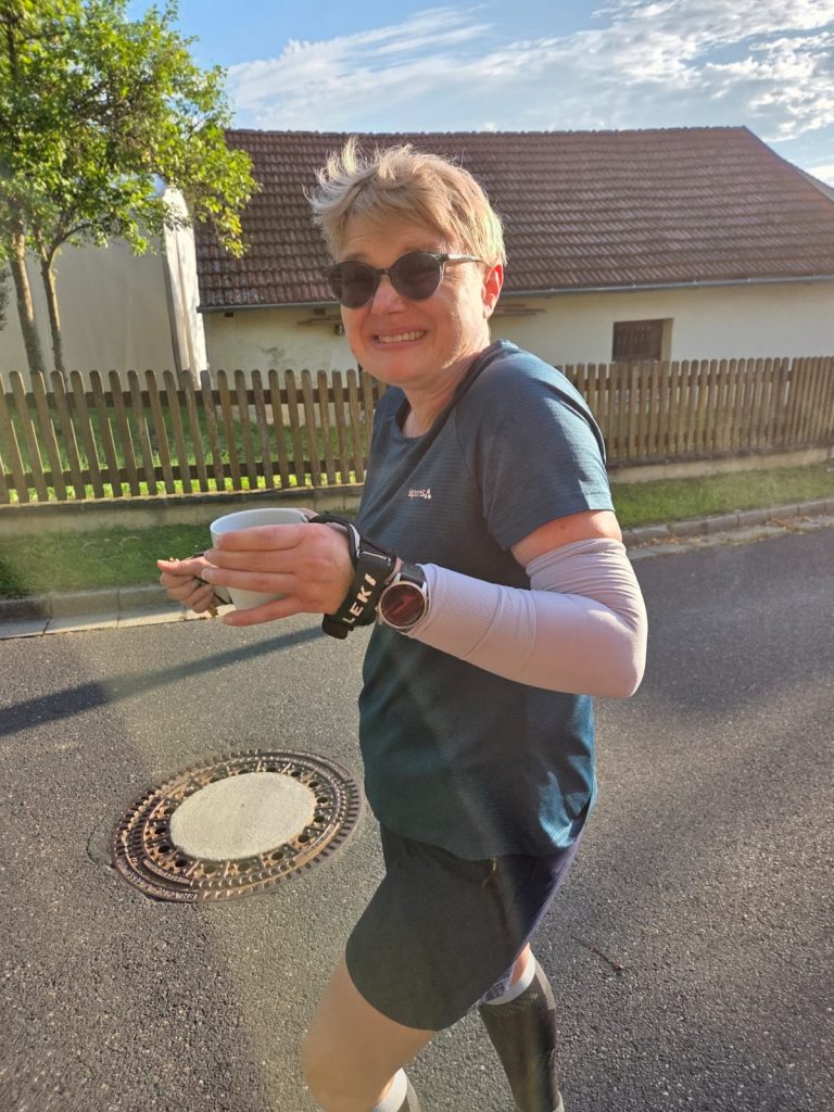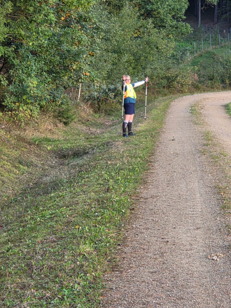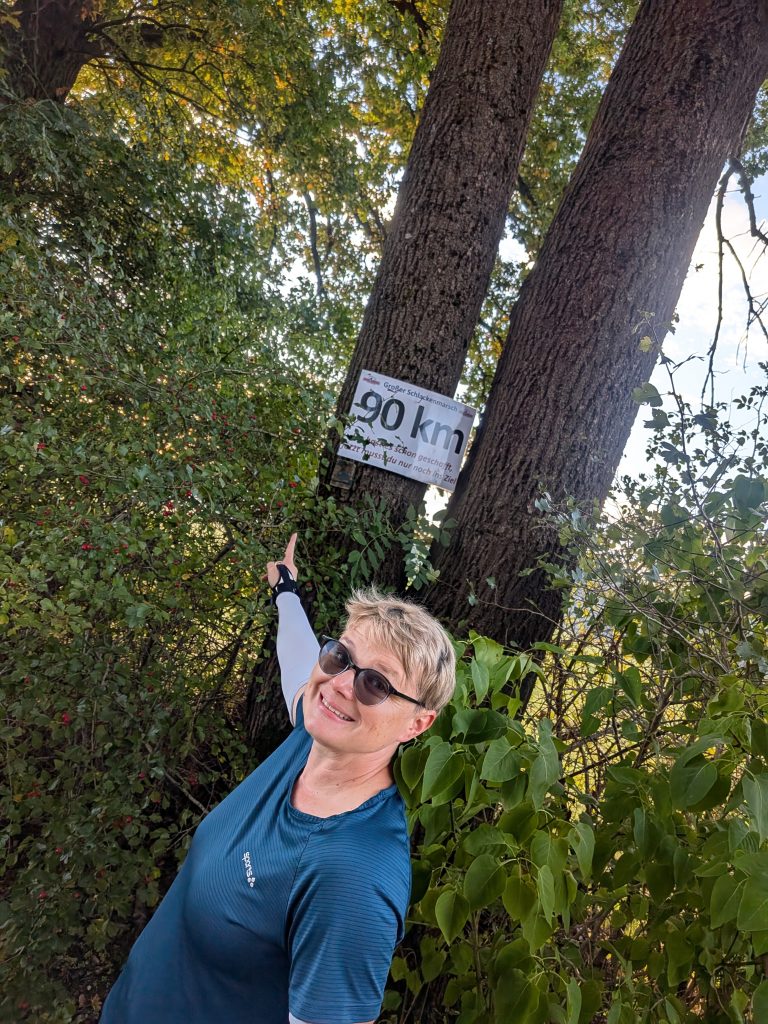 Los ging es, wie gewohnt, gemeinsam mit Doris. Wir waren diesmal überzeugt, auf jeden Fall 80 km zu marschieren, im besten Fall die komplette Strecke, je nachdem, wie es läuft. Von Anfang an war klar: Wir sprechen ab, was passiert, wenn eine von uns aussteigen muss. Klingt pragmatisch – doch mitten in der Nacht, bei rund 70 km, wurde es plötzlich ernst.