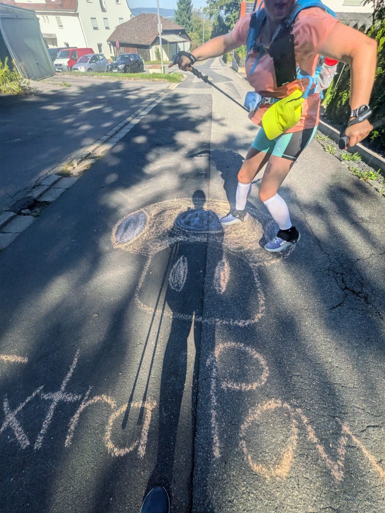 Ab da wurde es fast magisch. Scooter in voller Lautstärke, Meli an meiner Seite und ein Tempo, das ich selbst nicht mehr erklären konnte. Nach rund 93 Kilometern fragte ich Meli: „Darf ich laufen?“ Sie schaute mich an, als wollte sie sagen: „Bist du irre?“ – aber sie nickte. Also joggten wir. Nicht sehr schnell und auch nicht sehr lange, aber wir joggten – nach über 93 Kilometern und weit über 24 Stunden in denen ich bereits wach war (hab ich schon erzählt, dass ich um 5 Uhr aufgewacht bin vor Aufregung?).
