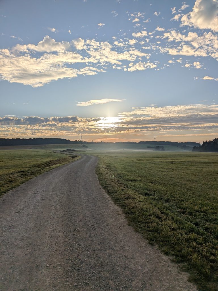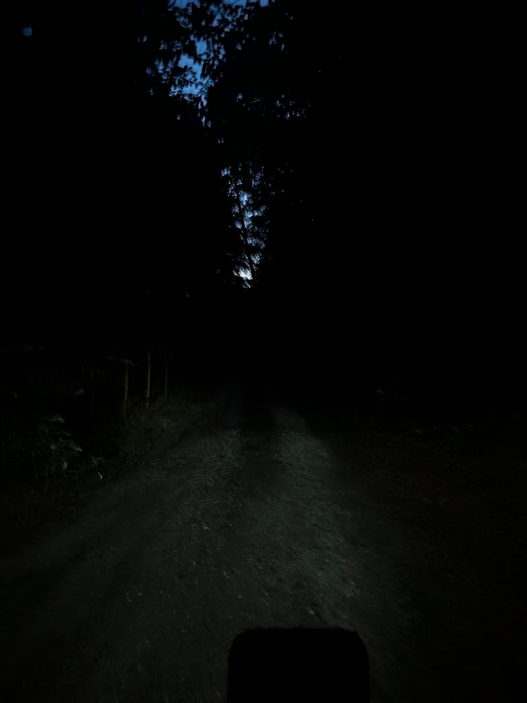 An der Versorgungsstation bei 77 km wurden wir von Lichterschläuchen und einem kleinen ferngesteuerten Auto empfangen. Das war wirklich ein Highlight mitten in der Nacht. Die Verpflegung dort ebenfalls fantastisch! Beglegte Brote mit Essiggurken und mehr. Im Hintergrund lief der Song von Elton John „I´m still standing“ und ich dachte: ganz genau! Nach einer kleinen Pause machten wir uns alle gemeinsam wieder auf den Weg zurück nach Sulzbach zur Hauptstation. Unterwegs informierte ich meine Freundin Meli, dass ich ungefähr um 5 Uhr dort sein werde und wie sehr ich mich darauf freue, dass sie mich ab dann begleiten würde. Zu diesem Zeitpunkt hatte ich meine bisher längste Strecke geschafft und ich war überrascht, wie gut es mir eigentlich ging.