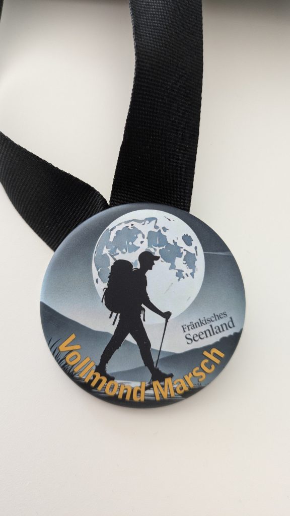 Im Ziel erhielten wir eine Medaille in Form eines Buttons und ich finde sie toll!